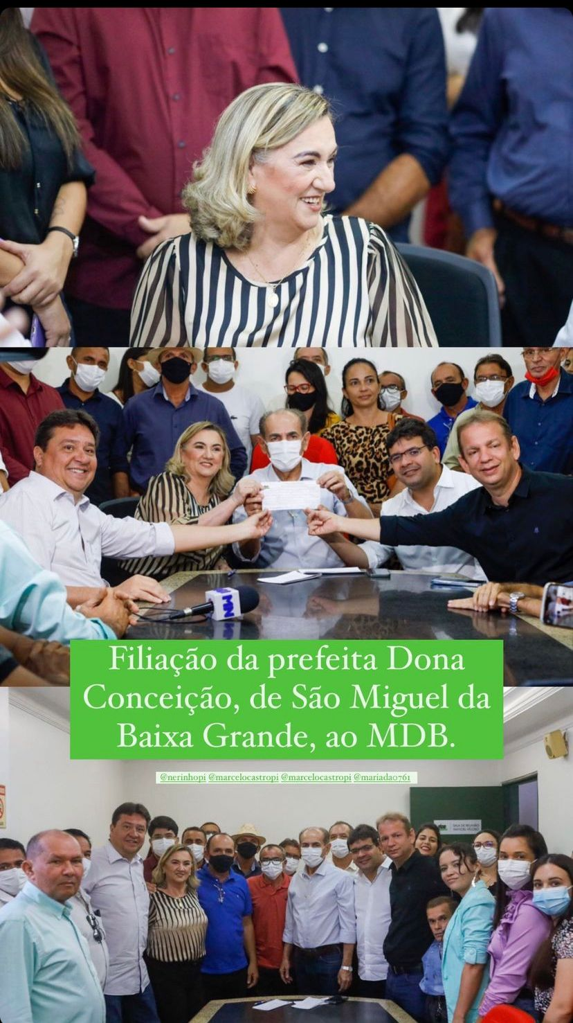 A prefeita de São Miguel da Baixa Grande, Maria Da Conceição Mendes Teixeira, mais conhecida como Dona Conceição, deixou o PTB e se filiou ao MDB na manhã desta segunda-feira (25).