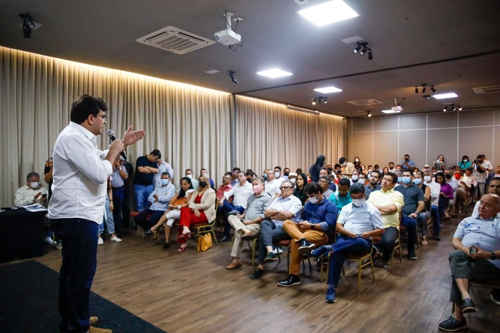 Os pré-candidatos a governador, Rafael Fonteles, e o pré-candidato a senador, Wellington Dias (PT), reuniram nesta segunda-feira (18) os pré-candidatos e pré-candidatas a deputados estaduais e federais para avaliação da pré-campanha e discutir os preparativos para as convenções partidárias do Time do Povo. As convenções acontecerão no próximo sábado (23), a partir das 14 horas, no Atlantic City, localizado na avenida dos Expedicionários.