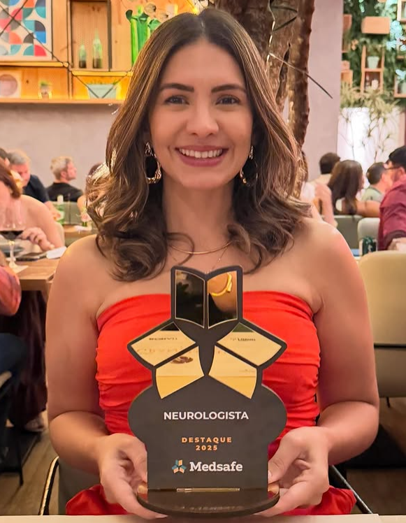 Doutora Fernanda recebeu o prêmio de Neurologista Destaque em 2025 da Medsafe, empresa que operacionaliza a Linha de cuidado de AVC no Piauí.