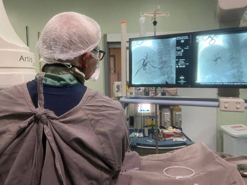 Para iniciar os atendimentos, o HGV realizou o primeiro caso de drenagem biliar percutânea, um procedimento inovador que ajuda pacientes com tumores de pâncreas que obstruem a passagem da bile do fígado para o intestino. Este procedimento alivia sintomas e melhora a qualidade de vida, permitindo que os pacientes iniciem o tratamento oncológico.