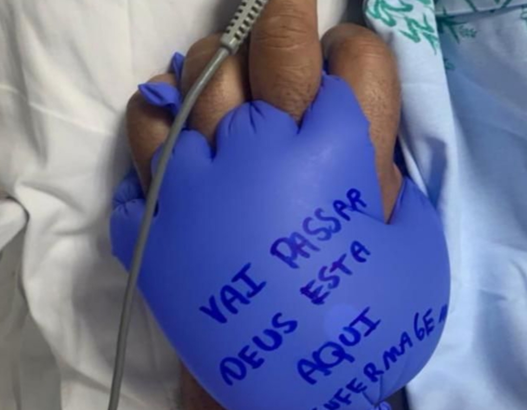 O paciente passa a ter a sensação de que alguém está segurando sua mão. Essa sensação produz conforto psicológico e ajuda a acalmar. Vi que outros hospitais públicos brasileiros estavam usando essa técnica em pacientes com coronavírus, então decidi adotá-la também no Hospital de Base. O resultado tem sido positivo.